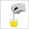 Der frisch gewonnene Urin wird in einem Plastikbecher gesammelt.