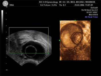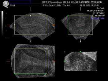 Ultraschall des kleinen Beckens mit der Vaginalsonde Die Ultraschalluntersuchung ist ein bildgebendes Verfahren, welches die Reflektion oder Echos von Ultraschallwellen in den unterschiedlichen Geweben und Organen ausnützt um computergestützt Schnittbilder aus dem Inneren des Körpers zu erstellen. Durch moderne hochleistungsfähige Mikroprozessoren ist es in den letzten Jahren möglich geworden, auch 3-dimensionale oder sogar bewegte 3-dimensionale (4-D) Bilder bzw. Bildsequenzen zu erzeugen. Beides können wir Ihnen in der Praxis anbieten. Eine Ultraschalluntersuchung ist ungefährlich und schmerzfrei. Durch die Anwendung von Dopplerverfahren, mit welchen wir den Blutfluss in den Organen feststellen und messen können, erweitern wir die Untersuchung um die funktionelle Dimension. Ein weiterer Bestandteil unseres Leistungsspektrums ist die farbkodierte Dopplersonographie. Farbkodiert sind entweder die Richtung des Blutflusses oder dessen Intensität. Über die computergestütze Berechnung des Blutflusswiderstandes ist im Einzelnen eine Aussage bzw. Vorhersage über die qualitative und quantitative Durchblutung möglich. (Plazentadurchblutung, kindliche Blutgefässe, Durchblutungsmuster bei verschiedenen Tumoren des Unterleibes und der Brustdrüsen) Ultraschalluntersuchungen haben in unserem Fachgebiet vielfältige Anwendungsmöglichkeiten gefunden. Besonders faszinierend ist der Einsatz im Bereich der vorgeburtlichen Diagnostik. Bereits in der 10. Schwangerschaftswoche ist es möglich, die Extremitäten des Embryos darzustellen und Aussagen zum Körperumrissbild zu machen (Ausschluss von Spaltbildungen, Nackentransparenzmessung). Auch im Bereich der Gynäkologie ist die Bedeutung des Ultraschalls stetig gewachsen und hat sich als erweiterte Vorsorge etabliert. Durch die vaginale Ultraschalluntersuchung können bereits kleine Veränderungen entdeckt werden, die sich der manuellen Tastuntersuchung noch entziehen. Auffällige Tastbefunde an den Eierstöcken sind durch den Einsatz von 3D / 4D in Kombination mit der Farbdoppleruntersuchung besser interpretierbar und können dadurch Frauen unnötige abklärende Operation ersparen. Die Anwendung des 3D Ultraschall, insbesondere im Coronarschnitt, lässt eine effektive Beurteilung für Veränderungen (Polypen, Karzinome) der Gebärmutterschleimhaut zu. ![]() ![]() ![]() ![]()